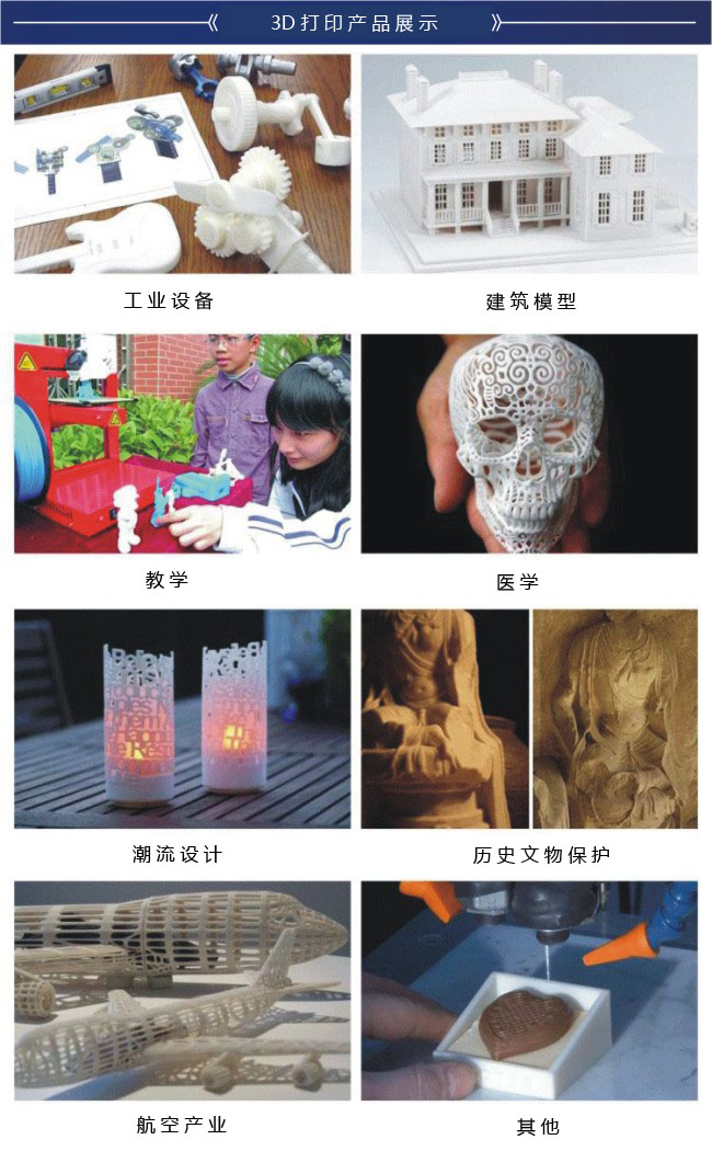 GLD-140 3D打印機(jī)的應(yīng)用領(lǐng)域極為廣泛,主要包括工業(yè)品設(shè)計(jì)、機(jī)械模具制造、教育、醫(yī)療、動(dòng)漫、玩具、制鞋行業(yè)、藝術(shù)設(shè)計(jì)等等,是一款方便大眾,極易操作的3D打印機(jī)。可以迅速將抽象的東西模型化。