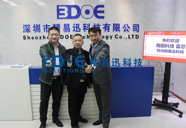 2016年12月1日,泉州市雨田科技開發(fā)有限公司雷總到訪精易迅科技,達(dá)成代理合作協(xié)議,企業(yè)之間相互交流補(bǔ)充,緊密聯(lián)系,攜手推進(jìn)數(shù)字化選鞋、數(shù)字化制鞋進(jìn)程。
