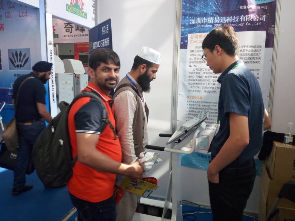 我們的技術(shù)人員正在給觀眾們?cè)敿?xì)的講解易族3D腳型掃描系統(tǒng) !