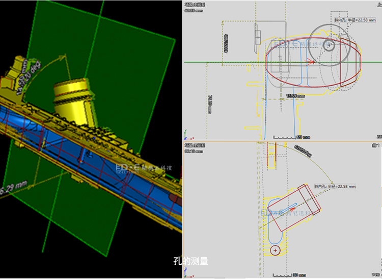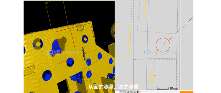 6.切面測量,2D的測量,支持在任意X,Y,Z方向上去切面轉(zhuǎn)換為一個(gè)測量平面,可以直接在空間和平面上測量角度,長度,直徑等