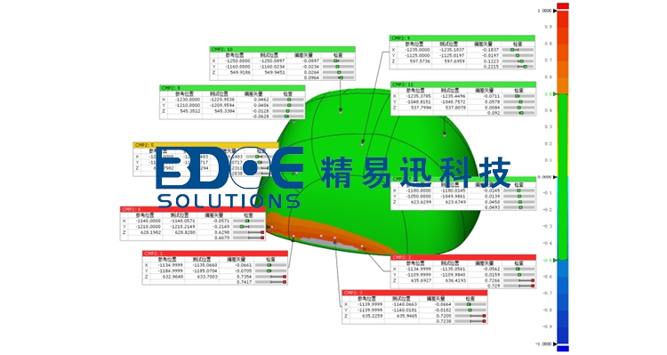3D全方位檢測色譜圖,設(shè)置公差可以顯示那些部分出現(xiàn)變形。準確快速找到問題所在,更好的顯示可以進行相應(yīng)局部的修改完善。