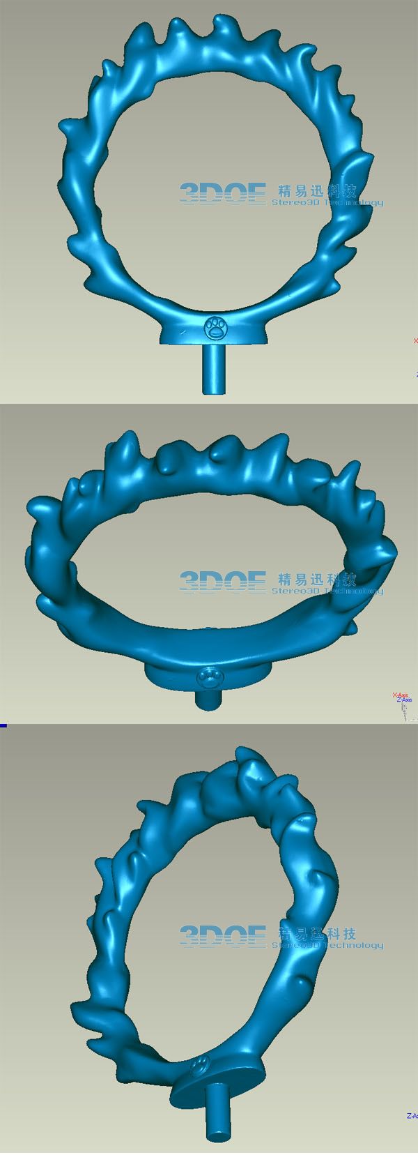 根據(jù)玩具工件特點(diǎn),采用逆向工程方法完成模型重建工作。采用三維掃描設(shè)備高效率、高精度地完成工藝品的數(shù)據(jù)獲取工作。應(yīng)用Geomagic 、Rapid form等軟件完成玩具的數(shù)據(jù)處理工作,獲得完整、準(zhǔn)確的數(shù)據(jù)以方便后續(xù)模型重建工作的進(jìn)行。