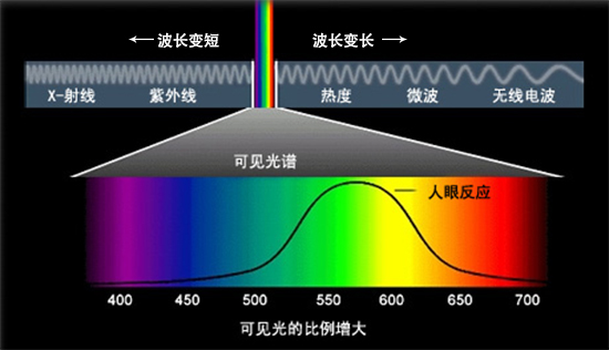 三維掃描儀所使用的結構光目前可分為白光與藍光技術,白光可以稱之為可見光;藍光屬于白光的一種;如下圖所示: