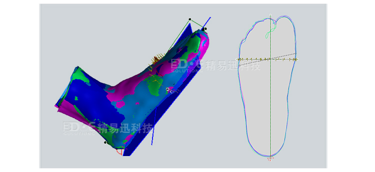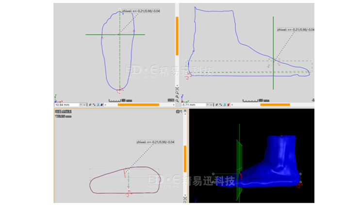可以截取測量斷面 生成二次B樣差值曲線, 為未來的更好的鞋楦比對(duì)提供數(shù)據(jù)