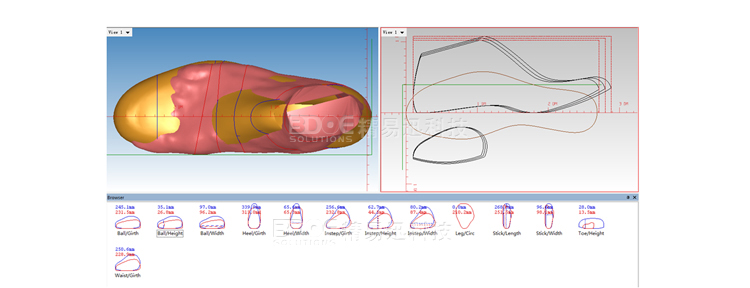 3D量腳定制鞋是基于計(jì)算機(jī)三維視覺的定制,就是利用腳型三維掃描儀掃描人體腳型,得到與人體腳型1:1的三維數(shù)據(jù),再利用shoemaster制鞋軟件對(duì)這個(gè)三維腳形文件進(jìn)行測量,各種測量。在軟件里對(duì)選定的鞋楦和腳形的STL進(jìn)行三維對(duì)比,找到和定制鞋客戶腳型一致的鞋楦,如果沒有找到合適的鞋楦軟件也可以根據(jù)客戶腳型STL數(shù)據(jù)做出修改鞋楦的建議,做出客戶獨(dú)有的鞋楦,根據(jù)客戶的鞋楦定制鞋。