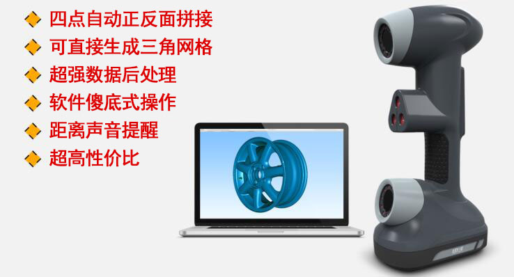 手持式激光三維掃描儀的用途是創(chuàng)建物體幾何表面的 點云(point cloud),這些點可用來插補(bǔ)成物體的表面形狀,越密集的點云可以創(chuàng)建更精確的模型(這個過程稱做三維重建)。若掃描儀能夠取得表面顏色,則可進(jìn)一步在重建的表面上粘貼材質(zhì)貼圖,亦即所謂的材質(zhì)印射(texture mapping)。手持式激光三維掃描儀是分析和報告幾何尺寸與公差(GD&T)的一種完美檢測設(shè)備。直接生成的stl文件,易于導(dǎo)入檢測軟件加以快速編輯和后續(xù)處理。