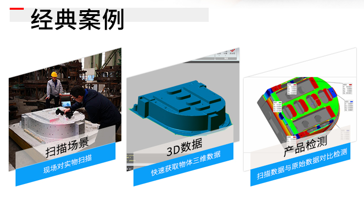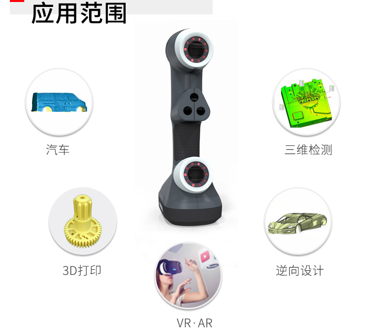 手持式三維激光掃描儀(eSharp-P7),能夠高效的完成各種大小工件的逆向設計和三維檢測,應用范圍非常廣泛,手持式激光三維掃描系統(tǒng)具備以下優(yōu)勢: