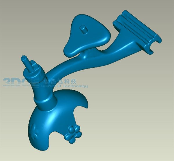 根據(jù)玩具工件特點(diǎn),采用逆向工程方法完成模型重建工作。采用三維掃描設(shè)備高效率、高精度地完成玩具的數(shù)據(jù)獲取工作。應(yīng)用Geomagic 、Rapid form等軟件完成玩具的數(shù)據(jù)處理工作,獲得完整、準(zhǔn)確的數(shù)據(jù)以方便后續(xù)模型重建工作的進(jìn)行。