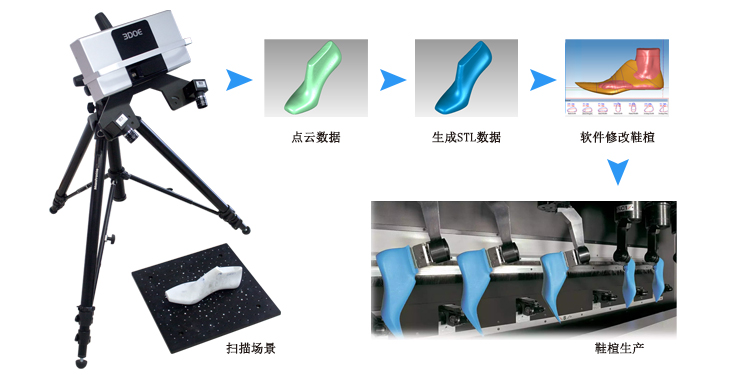 ● 專門用于鞋楦掃描的流程化軟件設計:
