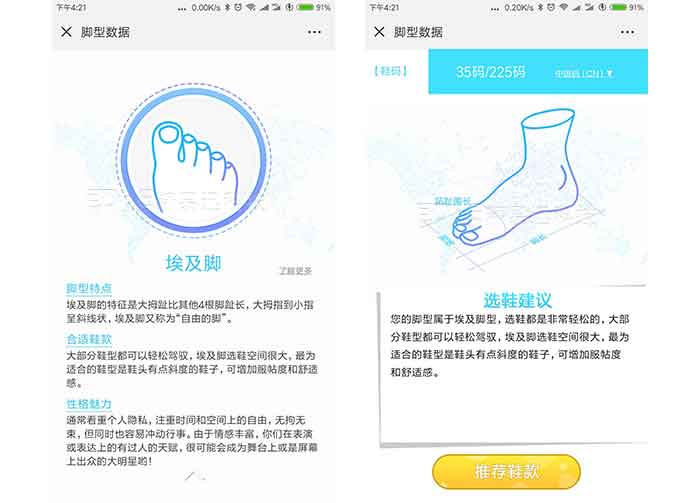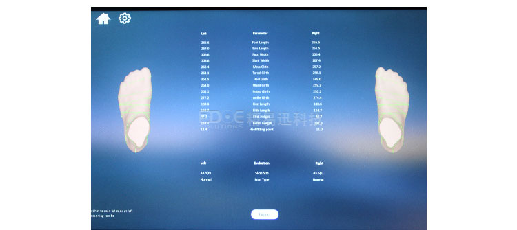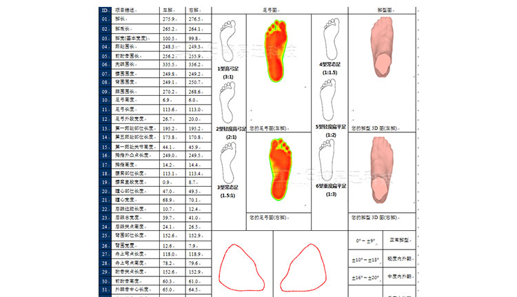 測試后獲取3D足型以及足部基本數(shù)據(jù)