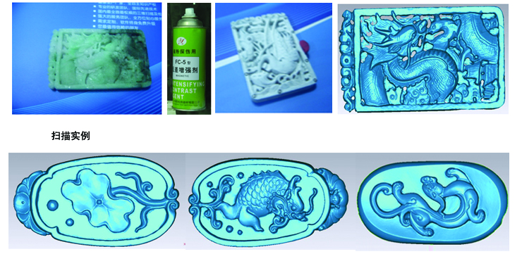 ● 表面預處理:玉的表面光亮透光,因此需要噴上一層薄薄的顯影劑(水一沖洗便可以擦掉),處理成漫反射表面才能掃描